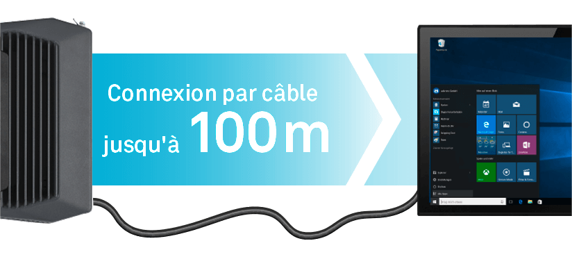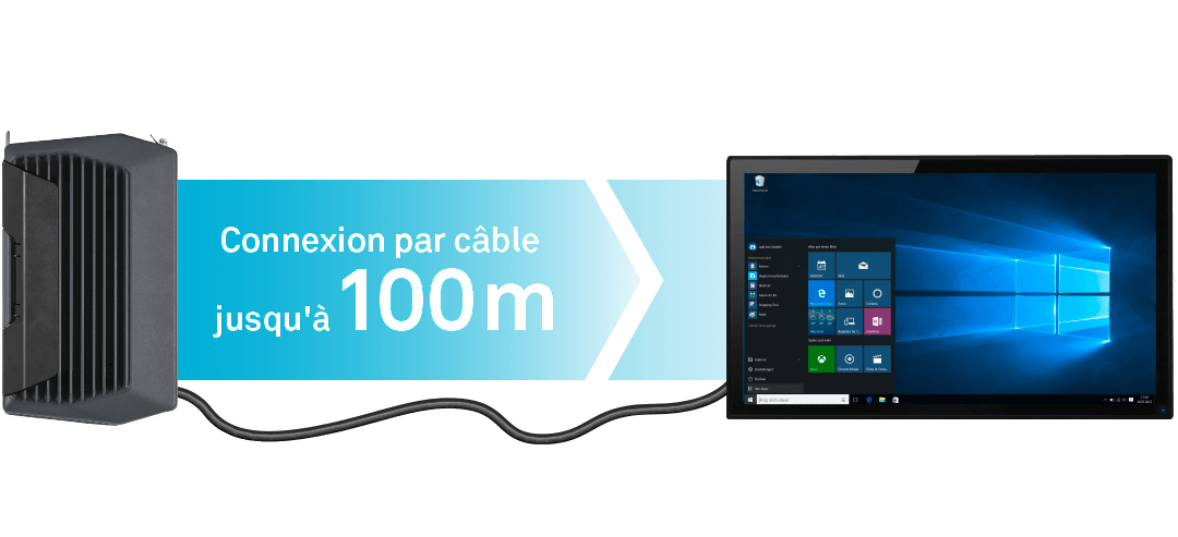 Idéal pour les environnements d’application éloignés dans l’espace : Avec le module d’émetteur HDBaseT intégrable en option dans IPC9000 et OPC9000, les signaux multimédia peuvent être facilement transmis jusqu’à 100 mètres sur un seul câble.